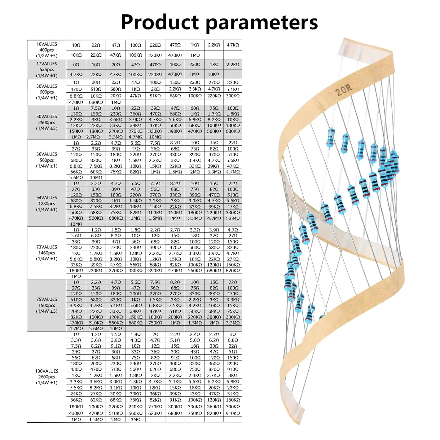 Wide Range of Resistances :This kit includes resistors with a wide range of resistances from 1ohm to 10Mohm, catering to various electronic needs.