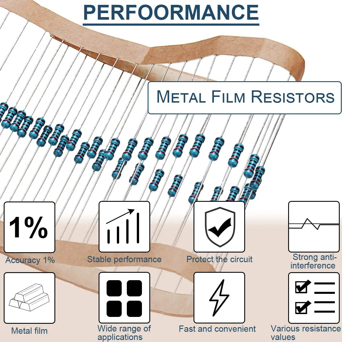 • ⚡[High Precision]1/4W accuracy 1% Metal film resistor, 30 kinds of specifications are available. Better protection of circuit connections and data transmission.