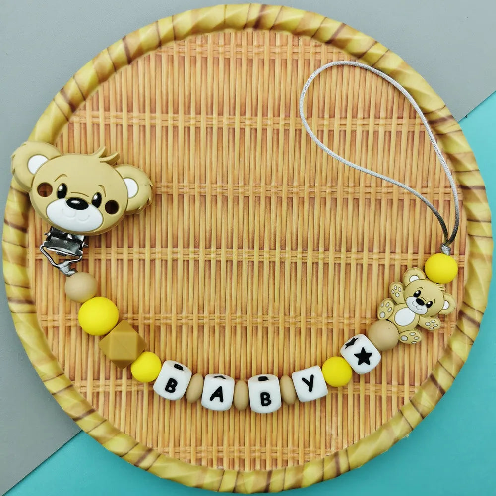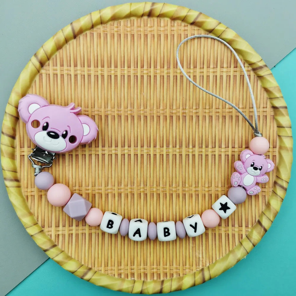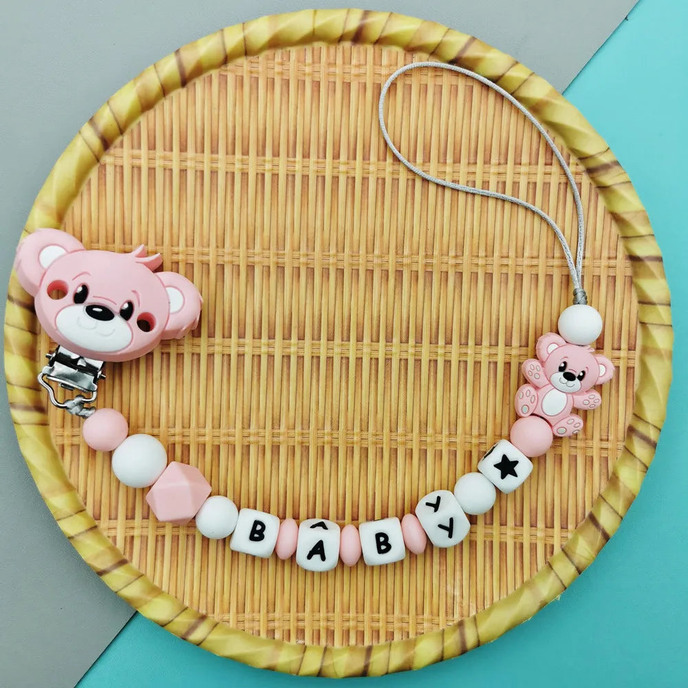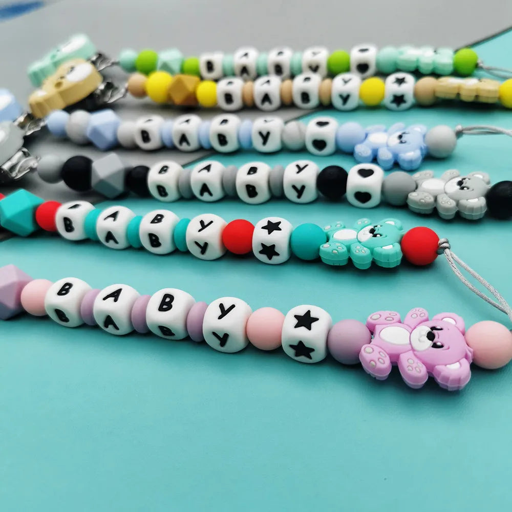 Custom English Russian Silicone Letter Name Baby Bear Silicone Beads Pendant Pacifier Clips Chains Teether Baby Kawaii Toy Gifts
