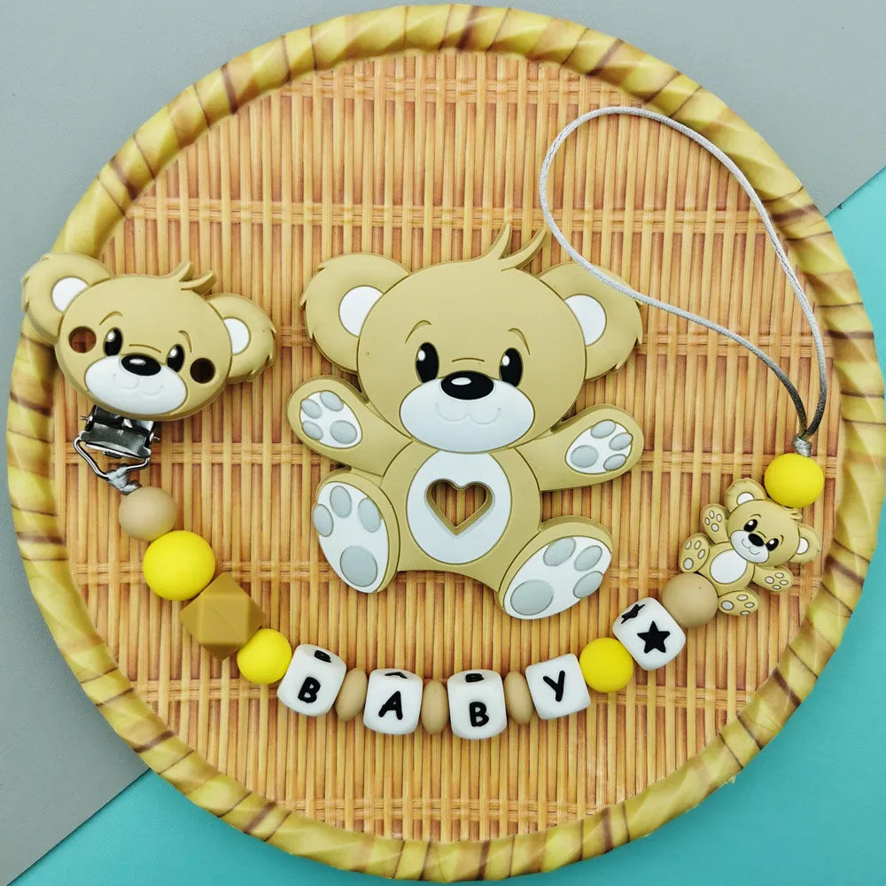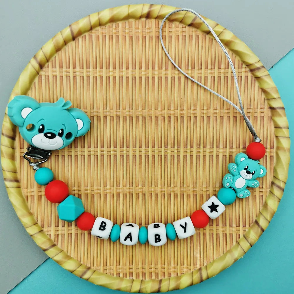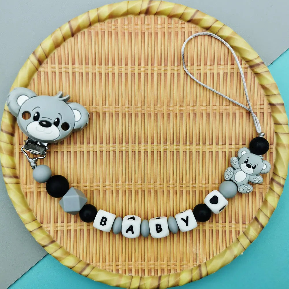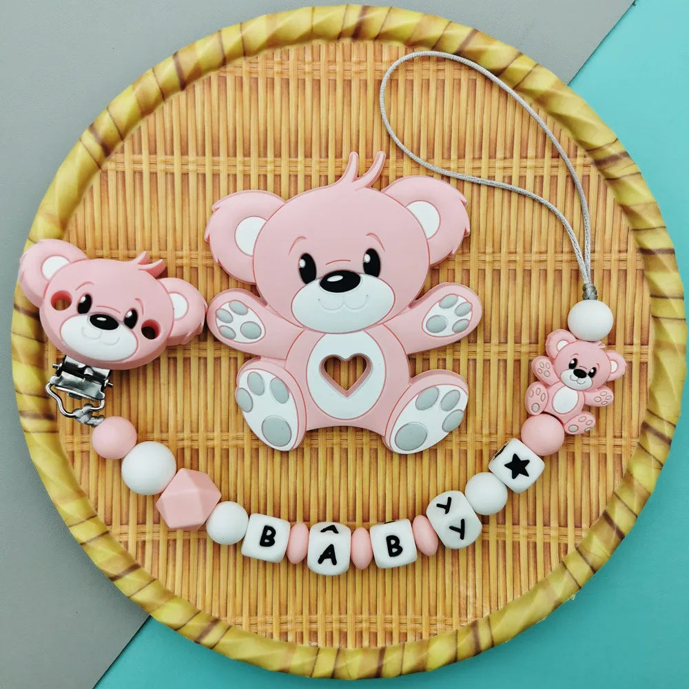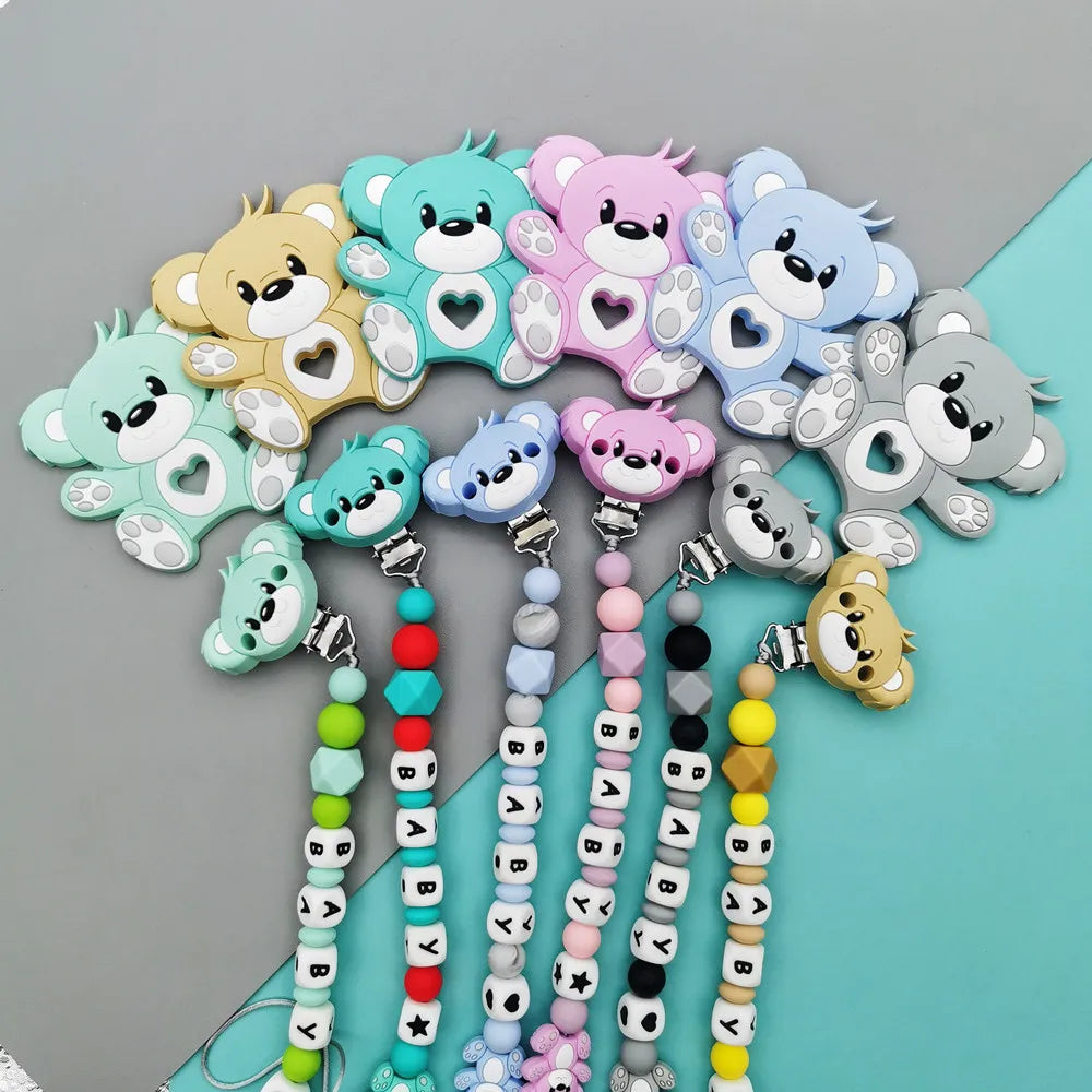 Custom English Russian Silicone Letter Name Baby Bear Silicone Beads Pendant Pacifier Clips Chains Teether Baby Kawaii Toy Gifts