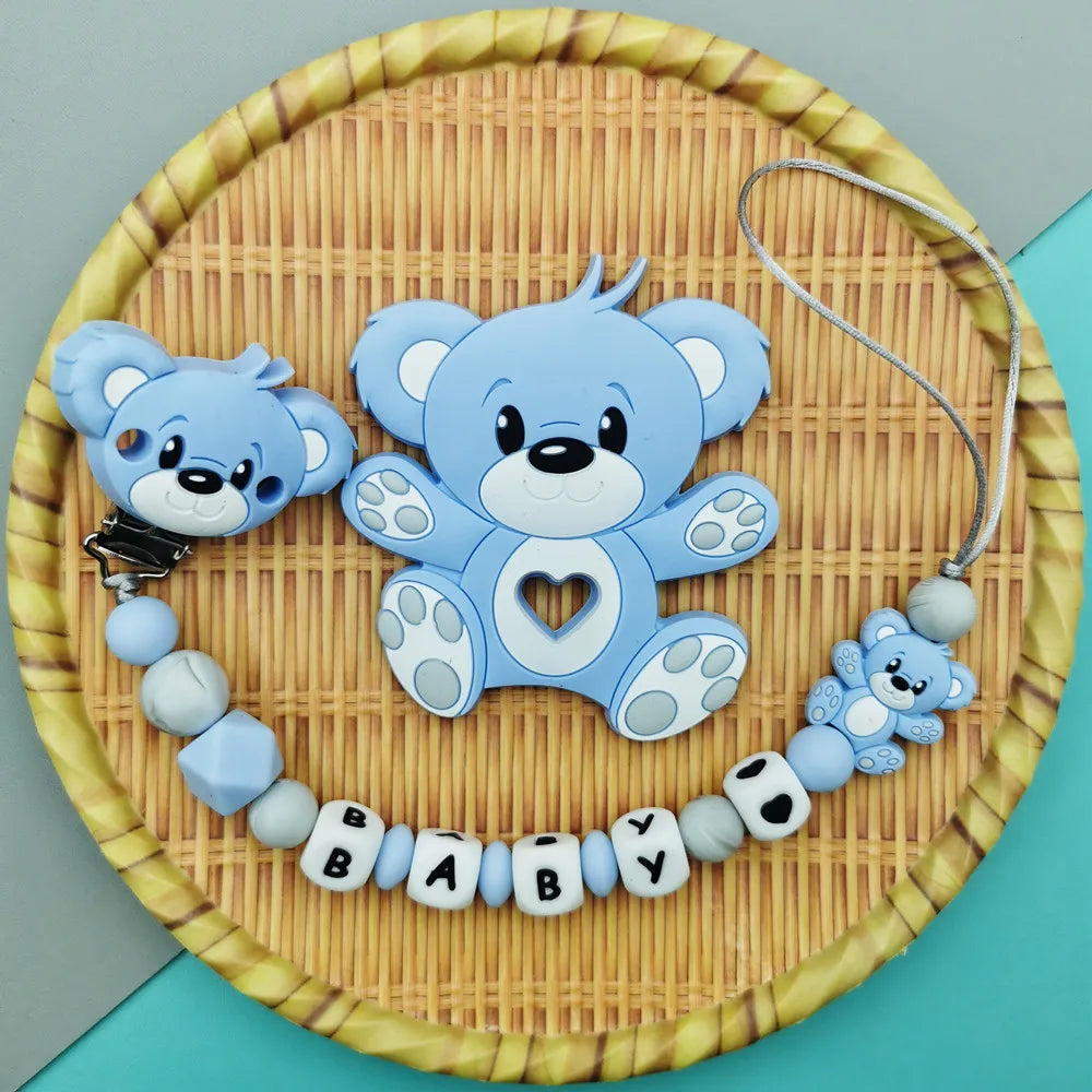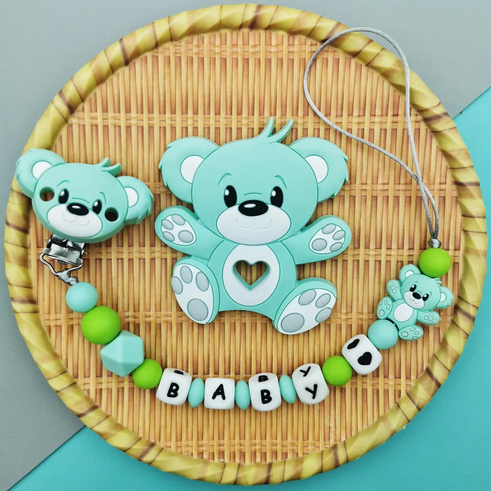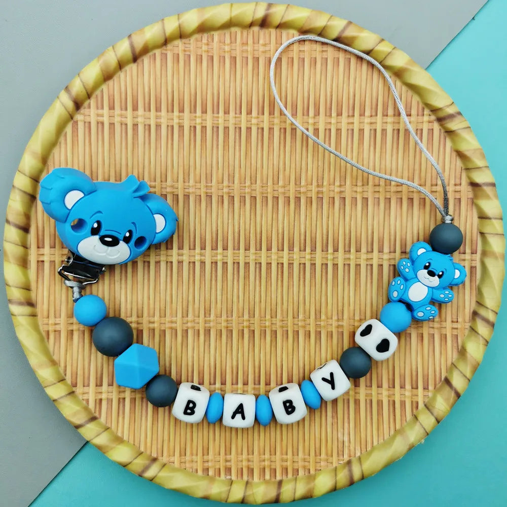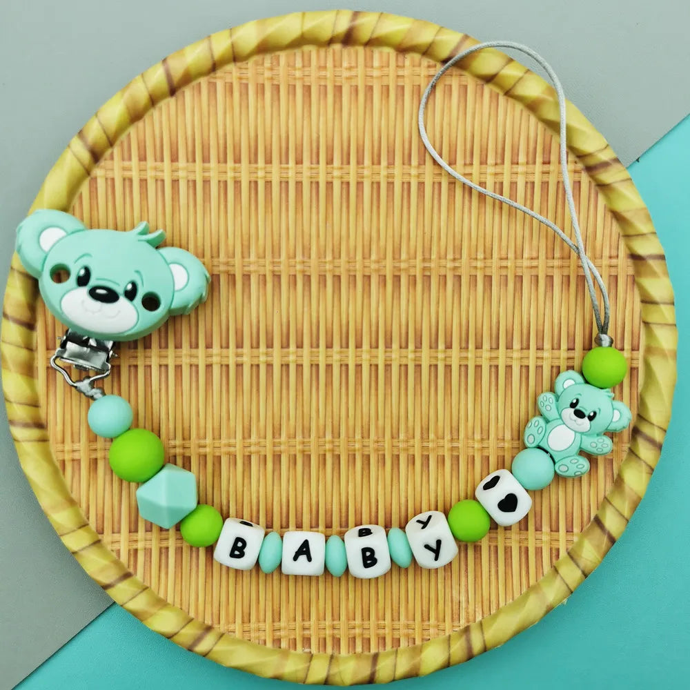 Custom English Russian Silicone Letter Name Baby Bear Silicone Beads Pendant Pacifier Clips Chains Teether Baby Kawaii Toy Gifts