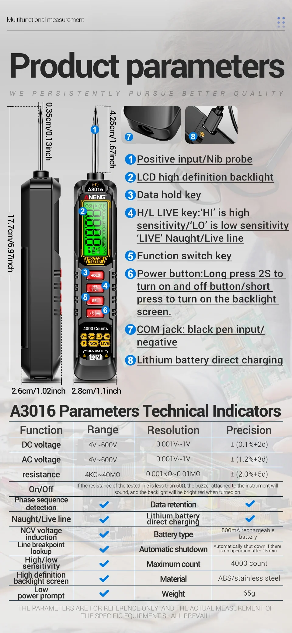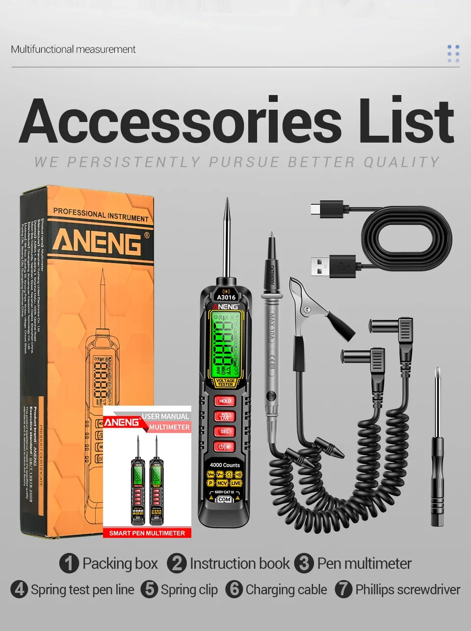 ANENG A3016 Digital pen multimeter Automotive professional AC/DC ammeter voltmeter NCV voltage induction diagnostic probe detector testing Tools