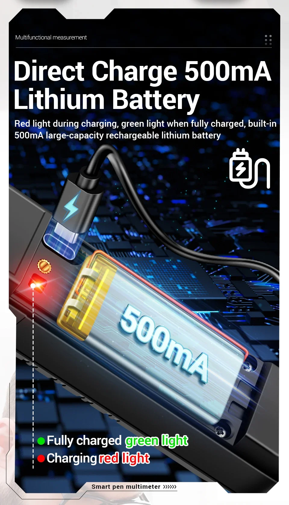 500mA rechargeable battery |