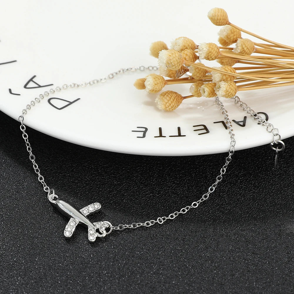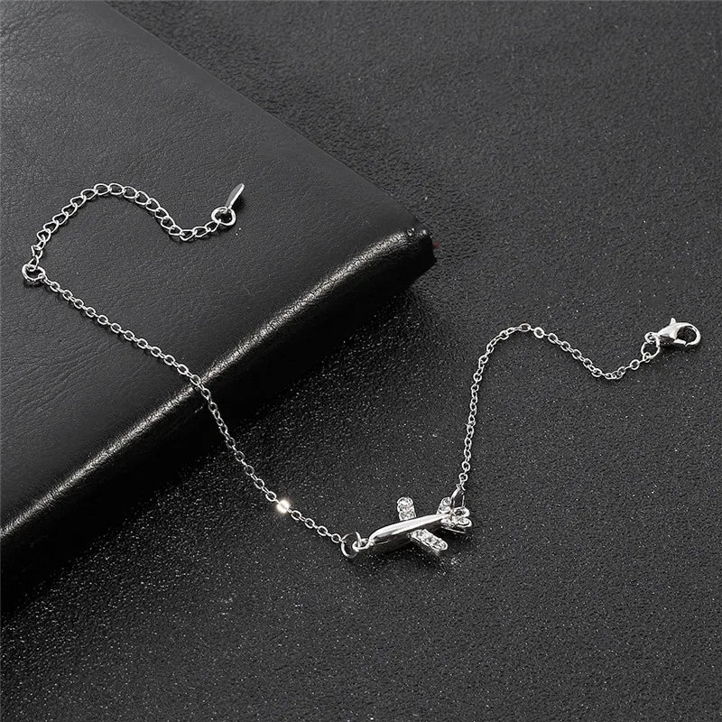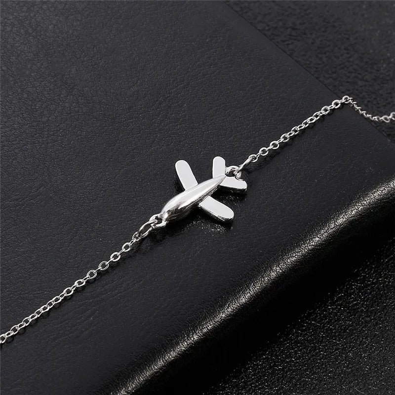 Fashion Bracelet For Women Simple Style None Stone Little Plane Fly Higher Silver Color Gift Fashion Jewelry Chain Bracelet