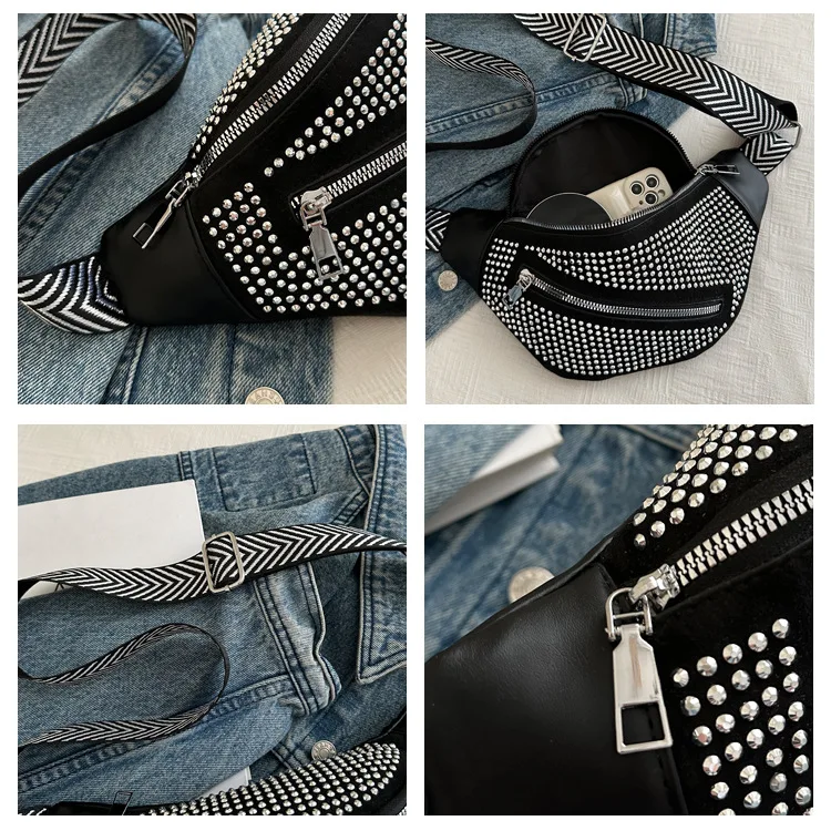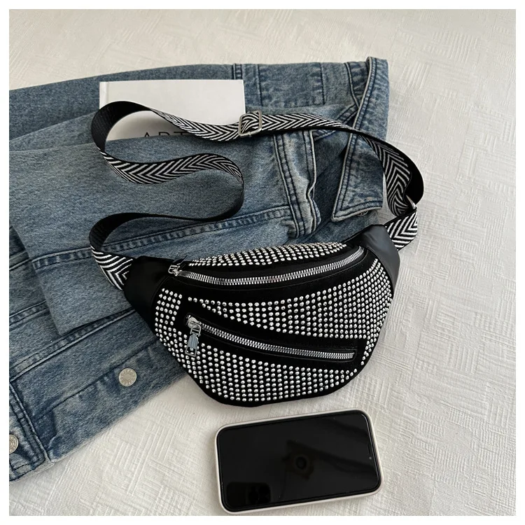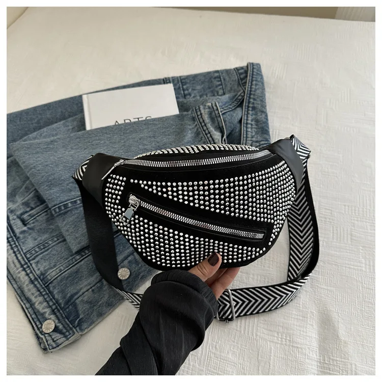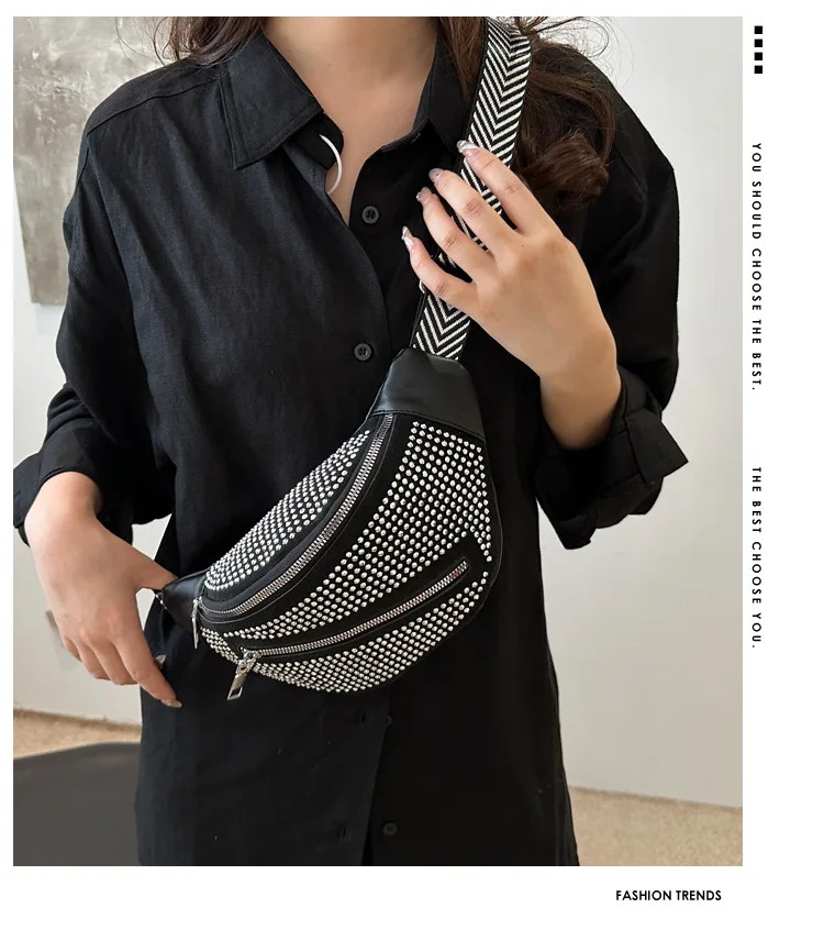 Fashion Rhinestone Studded Crossbody Bags For Ladies, Trendy Design Women's Shoulder Chest Bag For Halloween & Christmas Gifts
