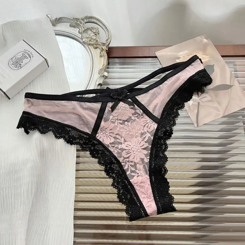 Flirtatiously See-through Lace Mini Underpants Hollow Low-waisted Pure Desire Thong Spice Girl Seamless T Pants Thongs Women