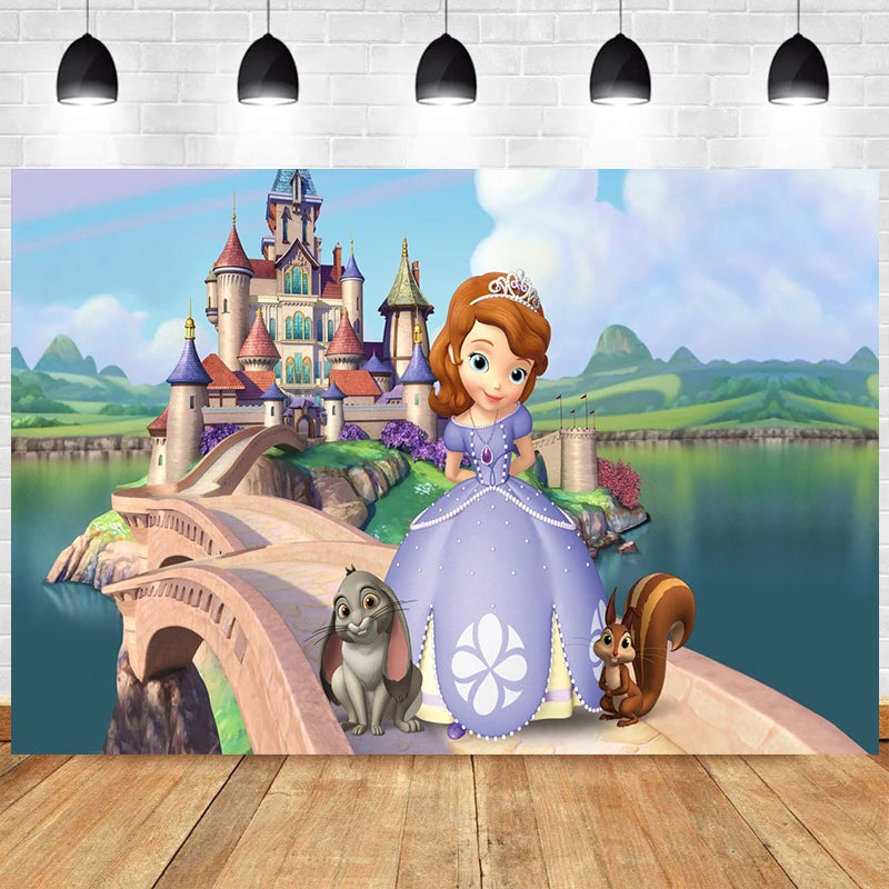 Girl Princess Sofia the First Background Cloth Birthday Baby Shower Decoration Background Room Hanging Cloth Photo Background