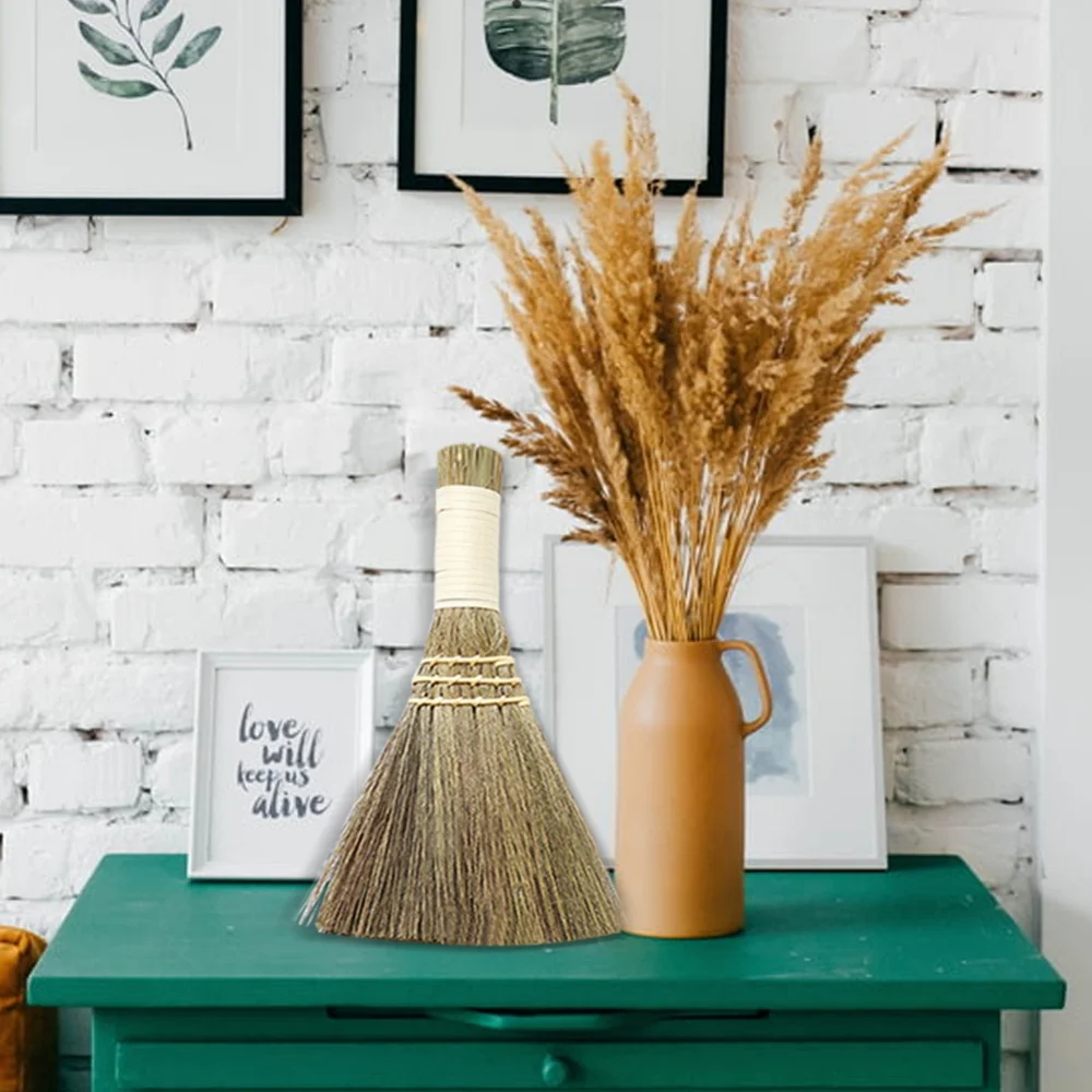 Handmade Straw Woven Broom Dust Floor Household Cleaning Braided Sweeping Small Broom Home Cleaning Tools Decoration Crafts