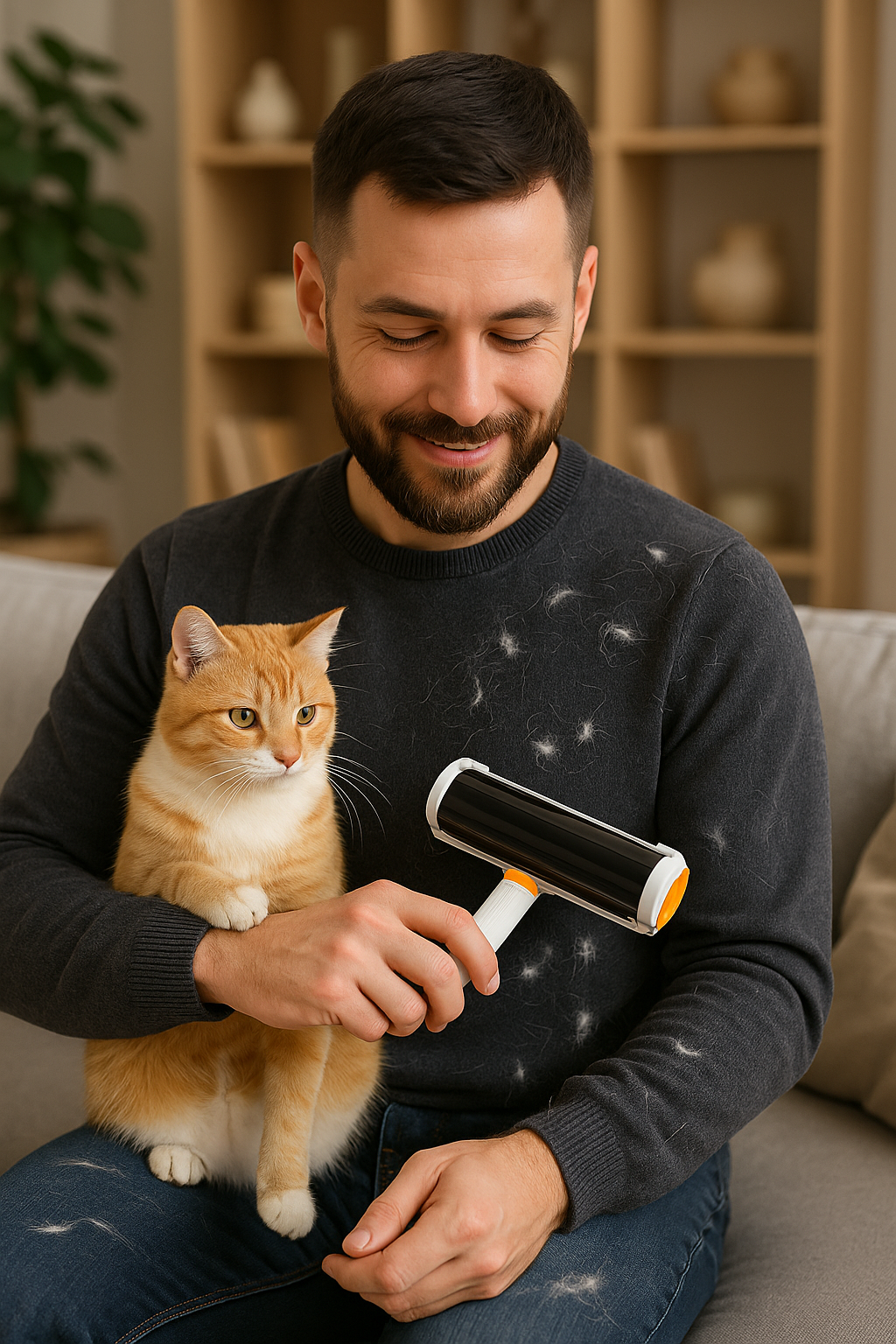 The Lint Roller for Pet Hair – Self-Cleaning Two-Way Roller is the ultimate reusable tool to keep your sofa, clothes, and car seats free of fur. Designed with an innovative two-way cleaning system, it picks up hair on the forward roll and collects it on the return, making every pass more effective.