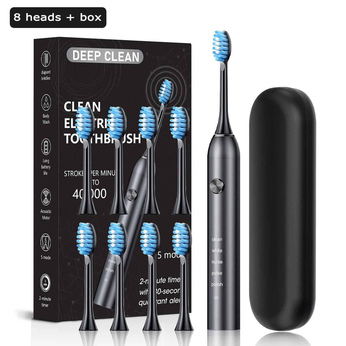 Sonic Electric Toothbrush for Adults USB Rechargeable Sonic Toothbrush with 8 Brush Heads Smart Timer Electronic Tooth Brushes