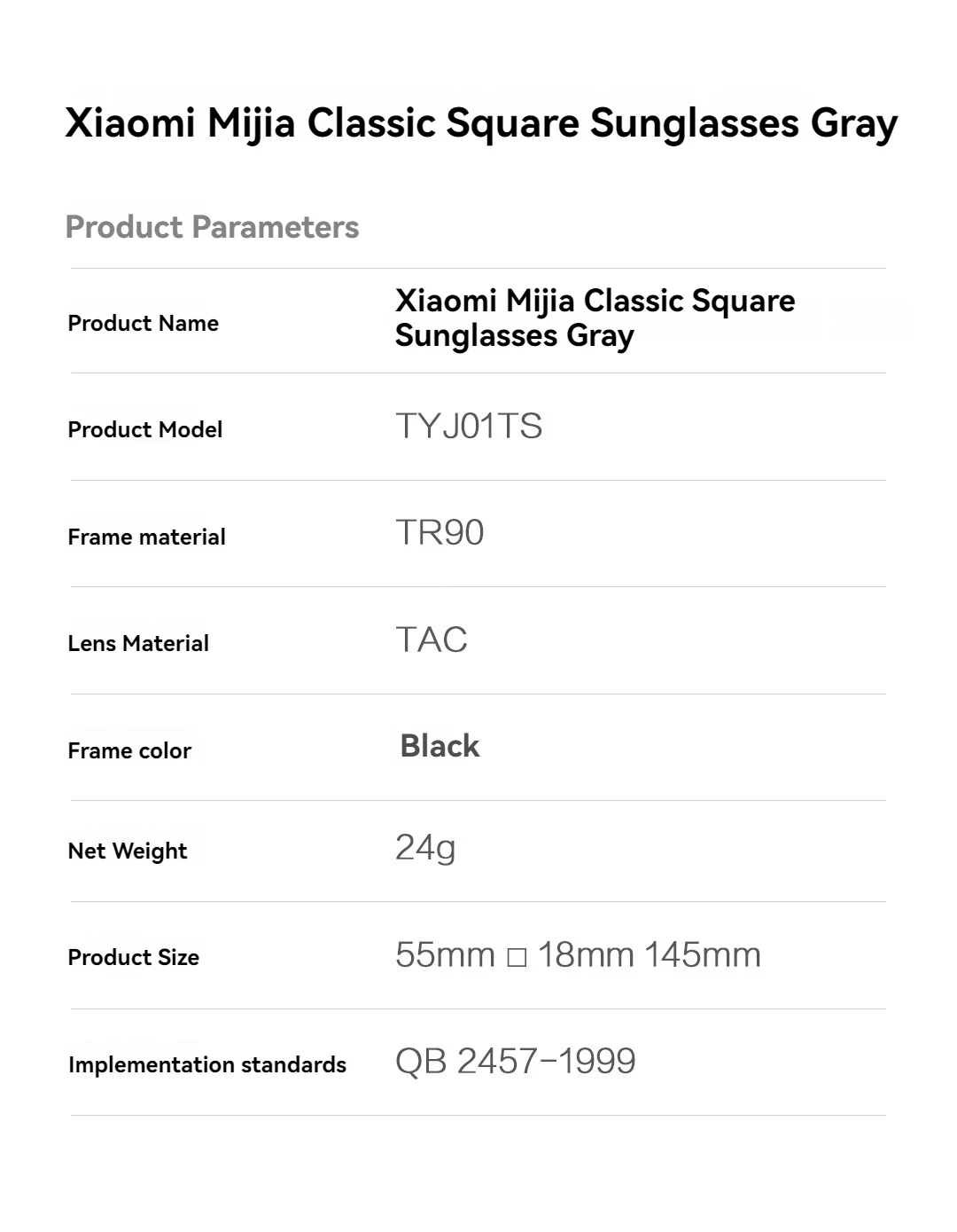 SPECIFICATIONSBrand Name: XIAOMIChoice: yesCommunication method: otherHign-concerned Chemical: NoneMax Speed: Square SunglassesModel Number: xiaomi Mijia Classic Square SunglassesOrigin: Mainland ChinaState of... Read more