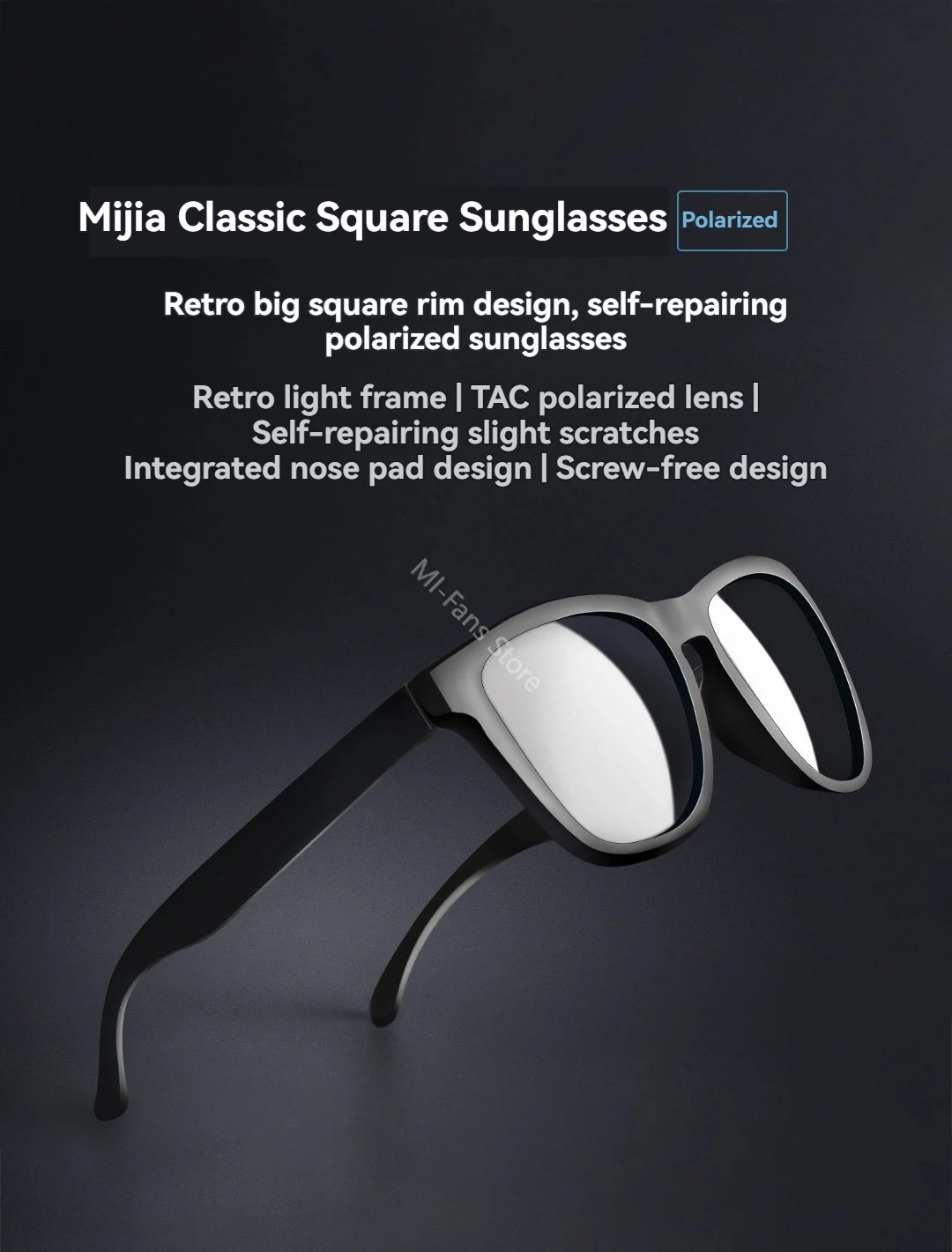 Xiaomi Mijia Classic Square Polarized Sunglasses TAC Lenses Sunglasses One-Piece Nose Pad Design Retro Light Frame Screwless